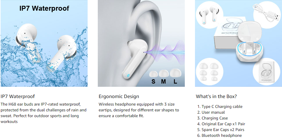 Designed for comfort, these ergonomically shaped earbuds fit naturally in the contours of your ear, ensuring a secure and comfortable fit during exercise, running, or all-day wear. The IP7 waterproof rating provides nano-coating protection, safeguarding the internal components from sweat, rain, and moisture, allowing the earbuds to last longer in all environments.